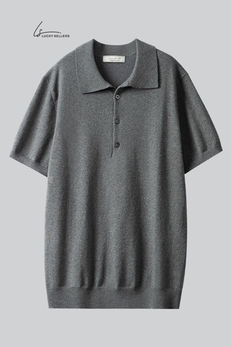 100% Cotton Thin Short Sleeve Button Lapel Polo Shirt Knitted Business Casual Slim Fit Men's T-shirt