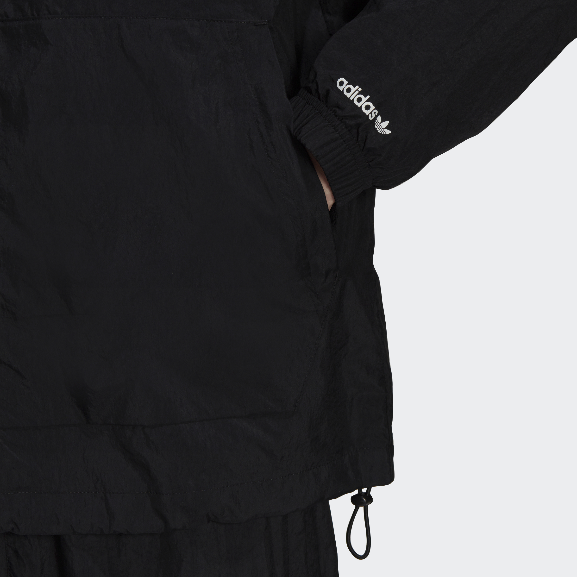 A little wind won't slow your roll. Not when you're layered up in the lightweight fabric and authentic style of this adidas windbreaker. Zip in and step out flashing a swirl of Trefoils. A nod to your creative spirit. Adjustable details help keep out blustery air. This product is made with Primegreen, a series of high-performance recycled materials.