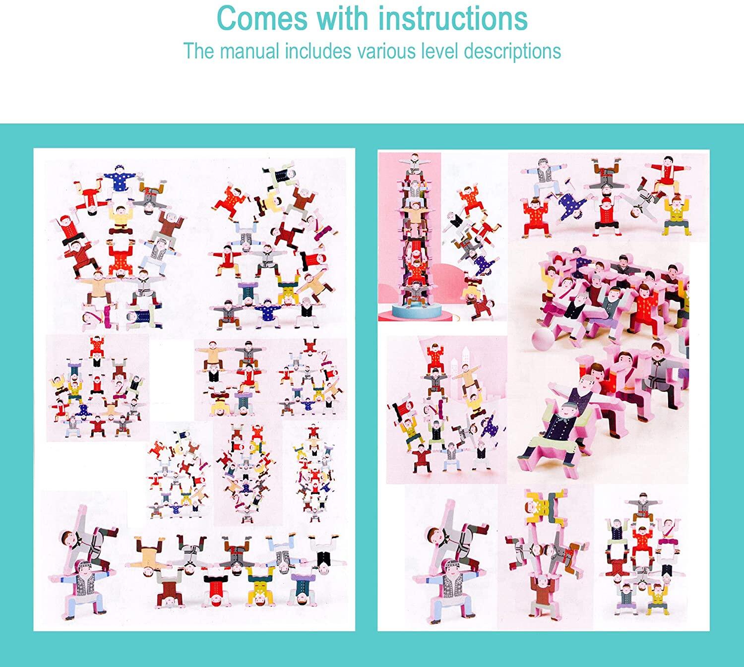 Wooden Stacking Games | Fun Balancing Blocks Acrobatic Troupe | Puzzle Board Game for Kids | Educational Toys Gift for Boys and Girls (16 Pieces ) | Building Block
