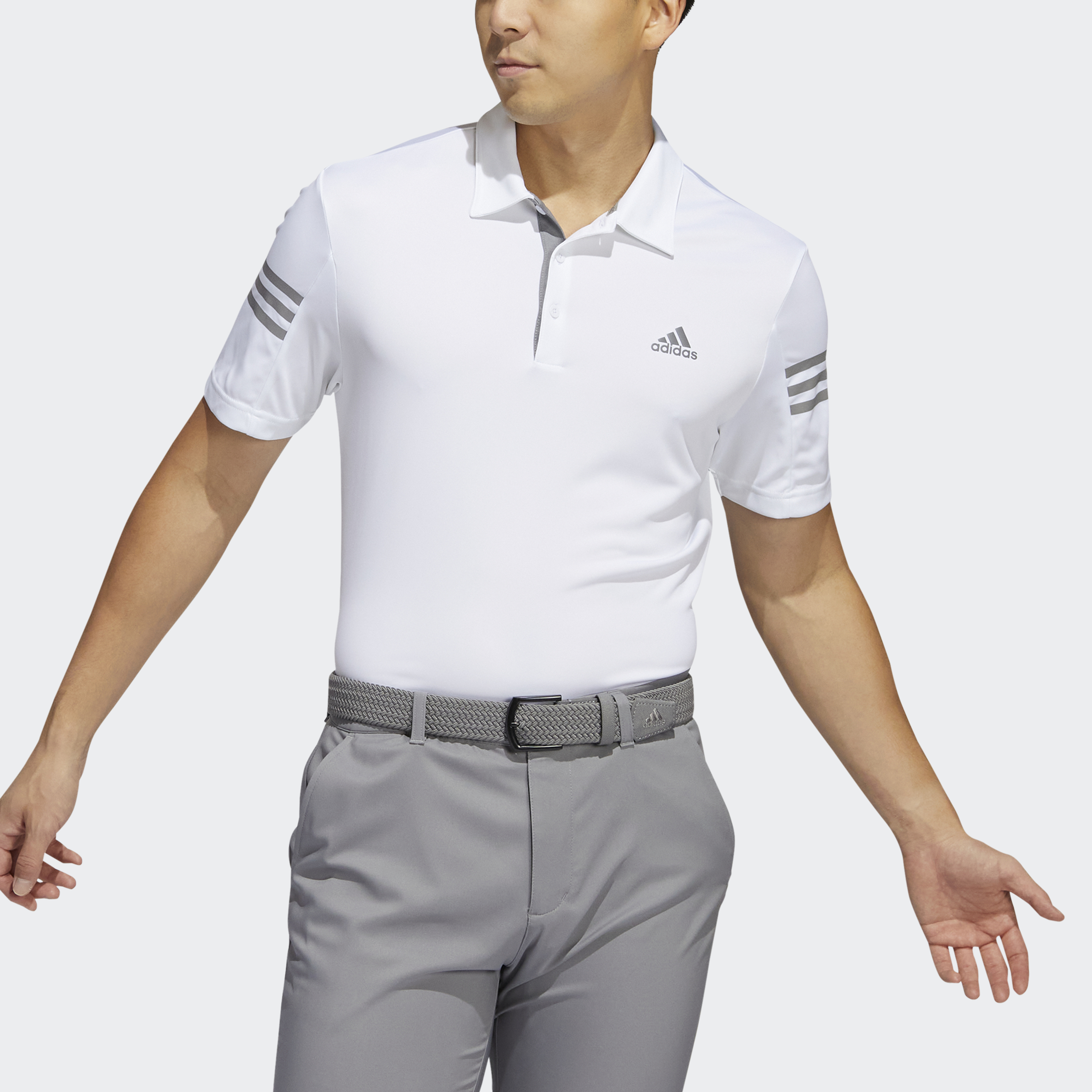Tee off in 3-Stripes style in this golf polo shirt. The soft, lightweight fabric is made with AEROREADY to manage moisture and keep you dry. An adidas Badge of Sport on the chest completes the look. Made with 100% recycled materials, this product represents just one of our solutions to help end plastic waste.