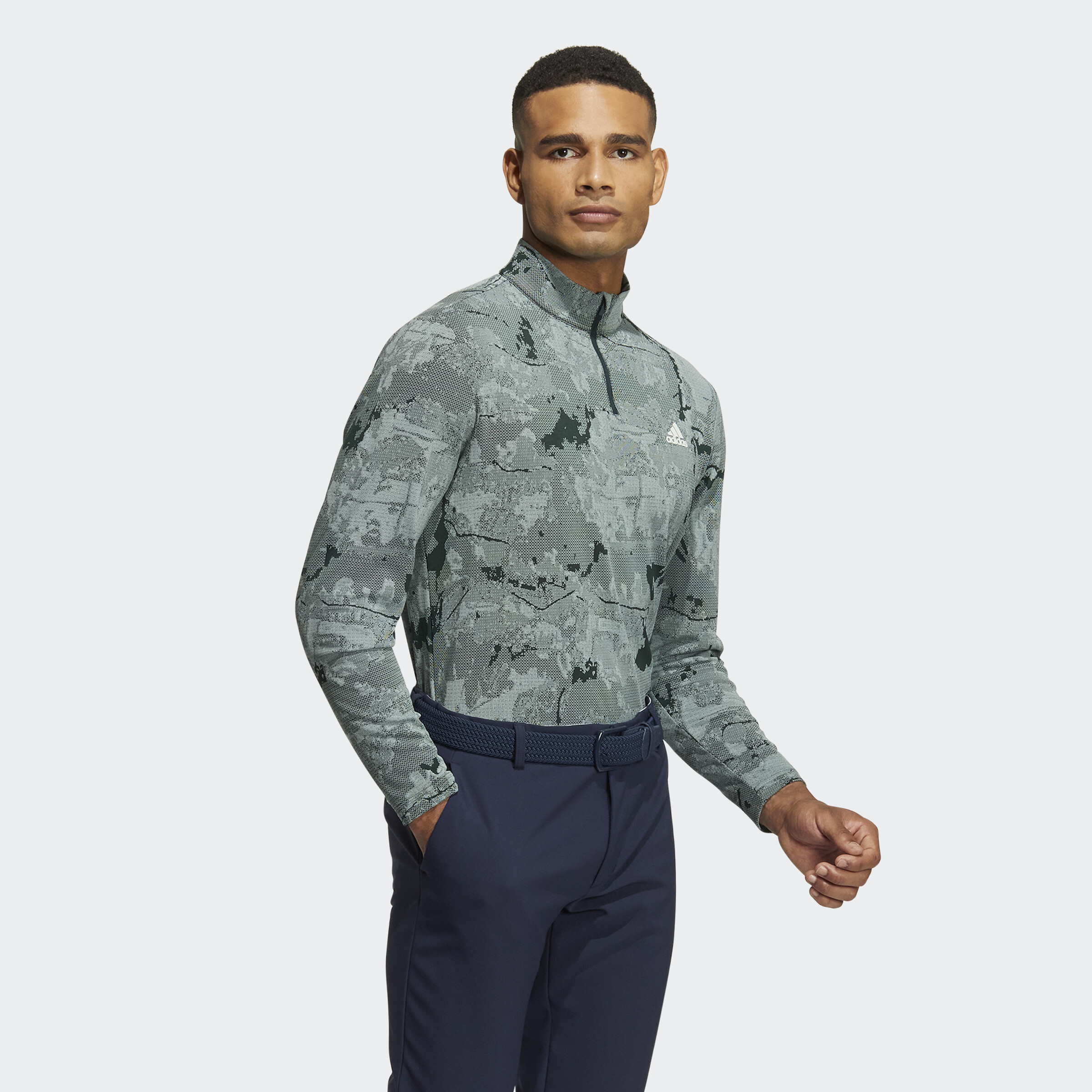 Start your round early with the extra warmth of this adidas golf shirt. A stand-up collar and soft jacquard knit bring the right blend of warmth and style to keep you comfortable. A golf-specific cut with plenty of stretch moves with your body for powerful drives and a relaxed feel. Made with a series of recycled materials, and at least 60% recycled content, this product represents just one of our solutions to help end plastic waste.