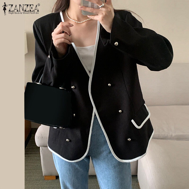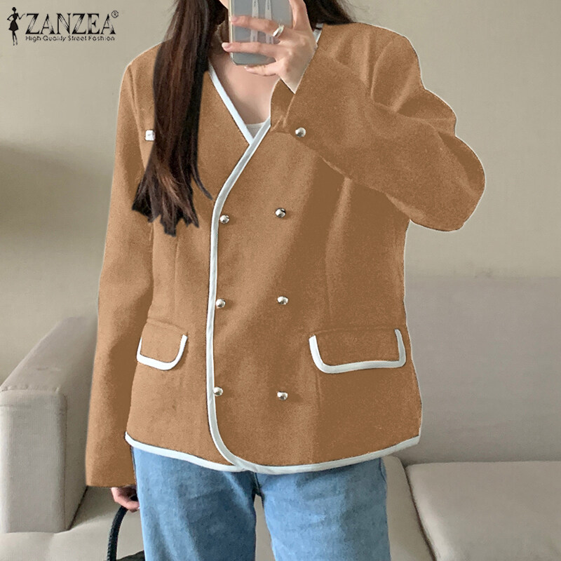 ZANZEA Korean Style Women's Elegant V-Neck Long Sleeve Blazer Office OL Double Breasted Suits #10