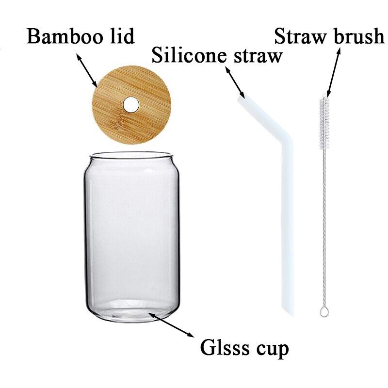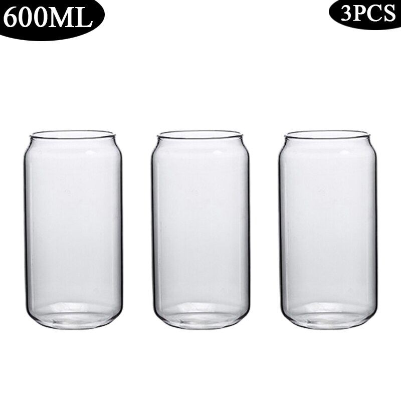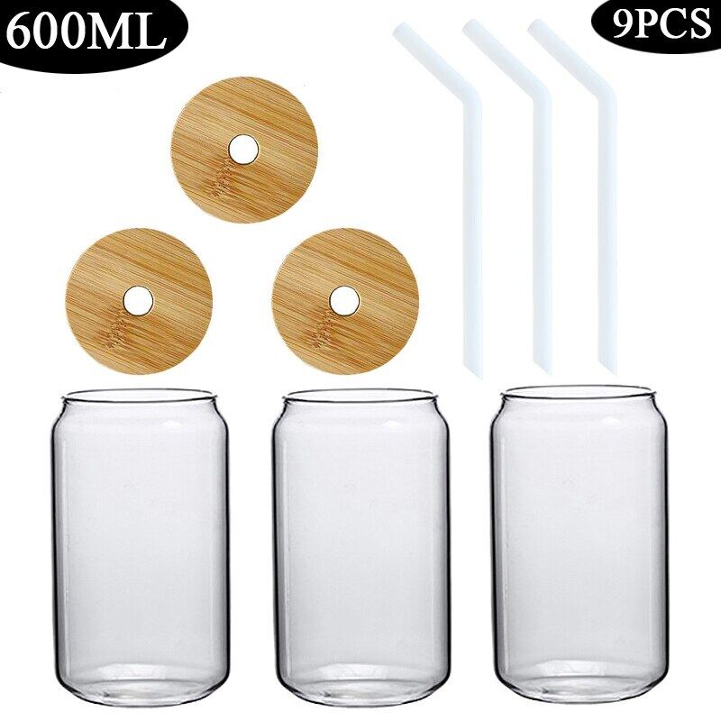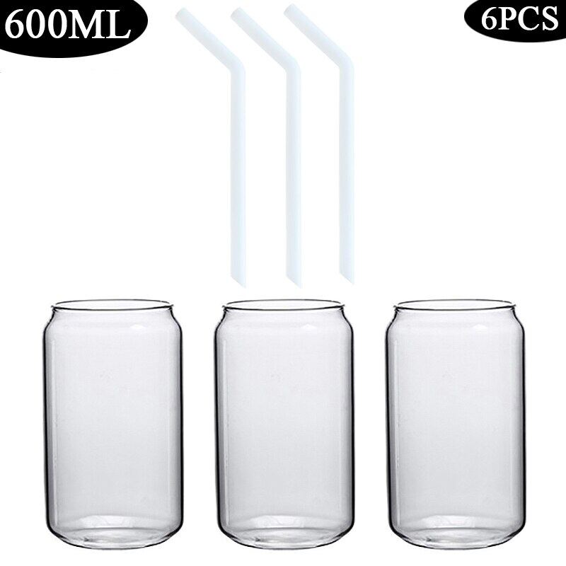 420/600ML 2-6PCS Transparent Glass Cup With Lid Straw Bubble Tea Cup Juice Coffee Beer Can Milk Mocha Breakfast Mug Drinkware