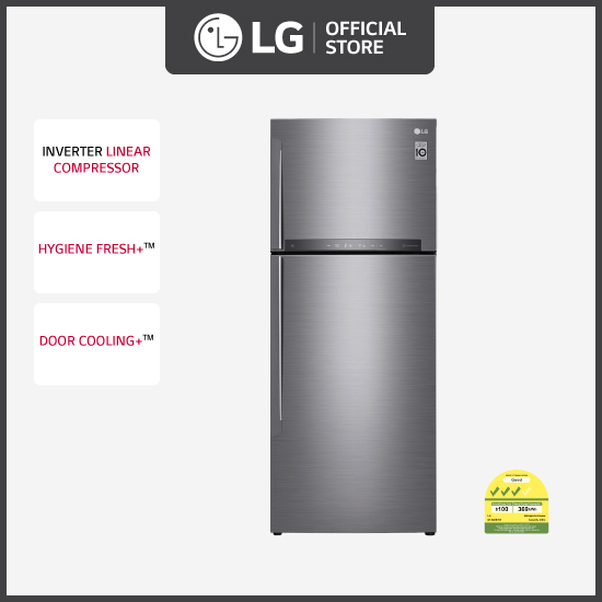 [Bulky] LG GT-B4387PZ 2 Doors Inverter Top Freezer Refrigerator, 438L, Platinum Silver + Free Delivery + Free Installation + Free Disposal